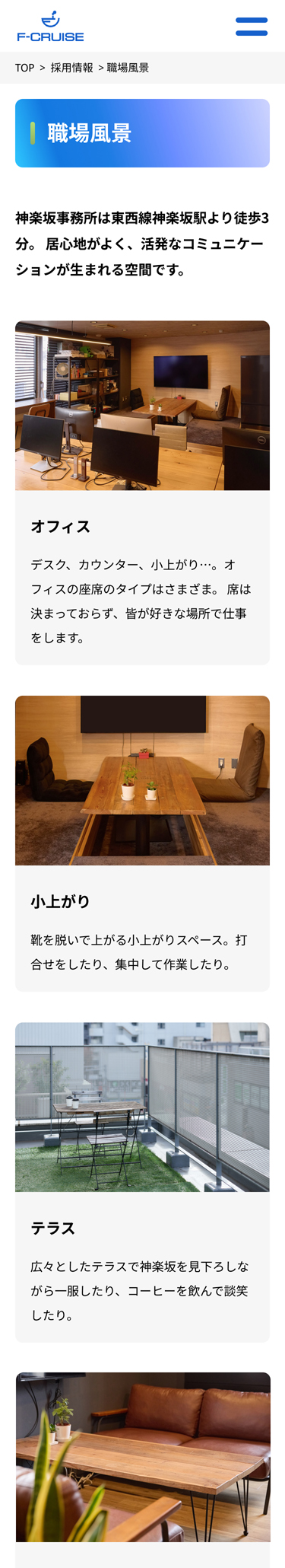 採用ページ向けの社員インタビューもOTOSOで実施。多くのインタビューを重ねることで、業務内容のみならず社風、空気感を含めて深くエフ・クルーズさまのことを理解でき、それらが制作に反映されて、コンテンツに厚みとリアリティが加わりました。