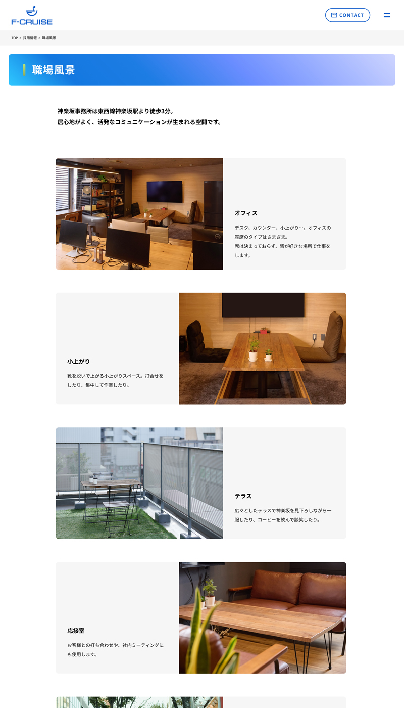 今回のリニューアルでは「内容、雰囲気とも実態に即したものに刷新し、正確に会社を知ってもらえるページにすること」、そして「採用ページを作成し、就職活動をしている人にも会社の魅力が十分伝わるようにすること」が課題でした。